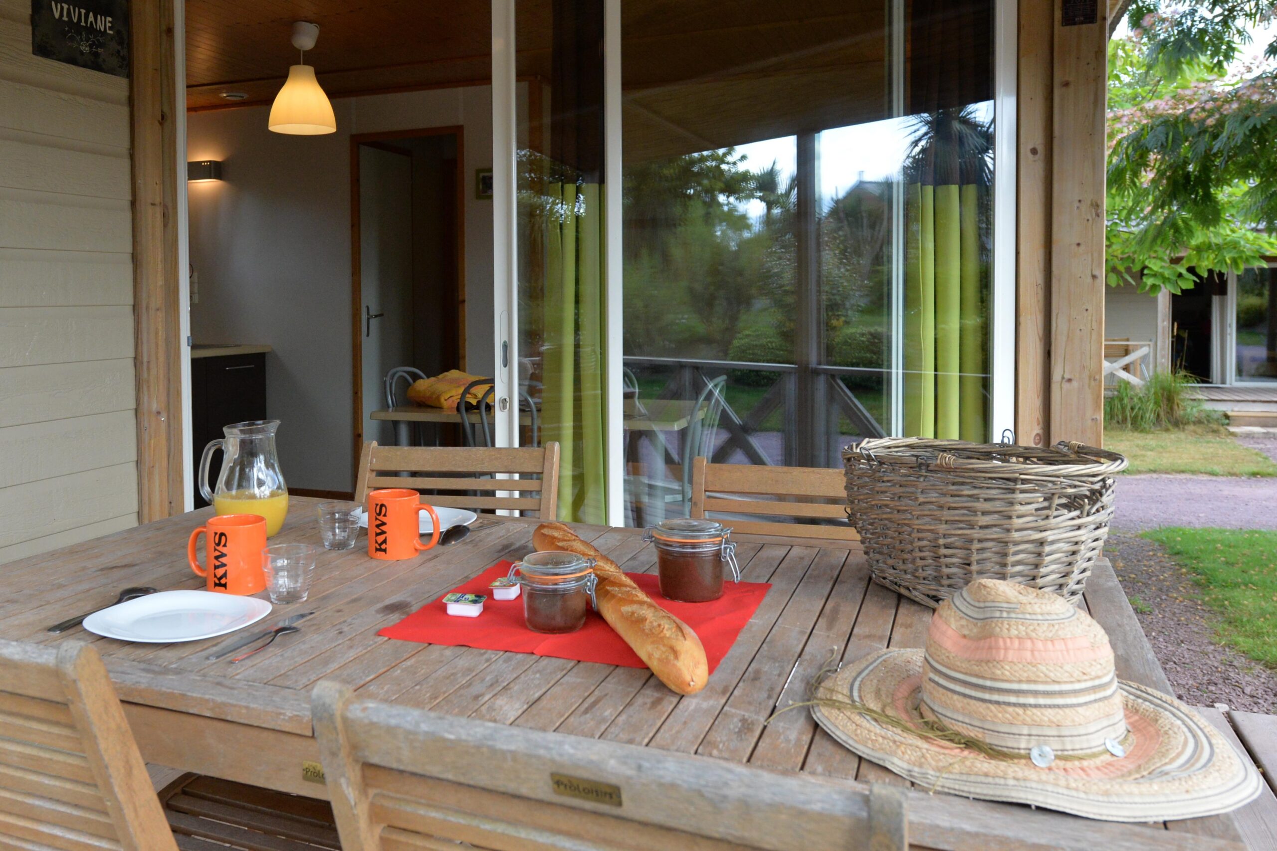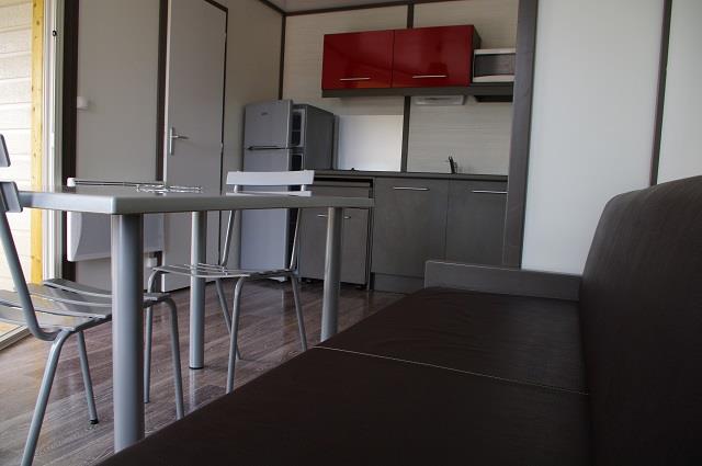 Camping Broceliande dans le Morbihan Komfort-Chalet PREMIUM 33 m² (2 Zimmer – 1 Bad) + überdachte Terrasse