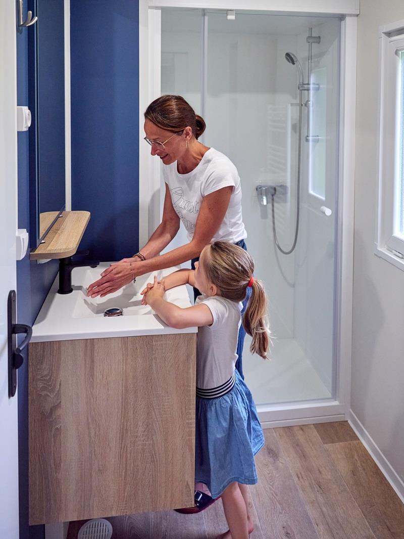 Our Breizh home has a modern, warm and authentic design and offers you a bedroom with a double bed, two secondary bedrooms with two single beds, a functional bathroom and a separate toilet. So don’t wait any longer, book your Breizh home and enjoy authentic holidays with family or friends in the heart of Brittany!